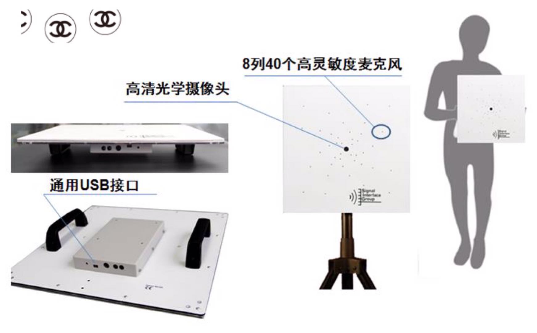 GLForeG120 是一款便携式的实时声学成像仪器,可以将声音以彩色等高线图的方式将声源可视化,形成类似于热成像仪对物体温度的探测效果。本设计采用了 优化 螺旋形阵列,针对高瞬态噪声源的检测 进 行了优化,同时对于稳态噪声源亦可以获得极佳的检测效果。